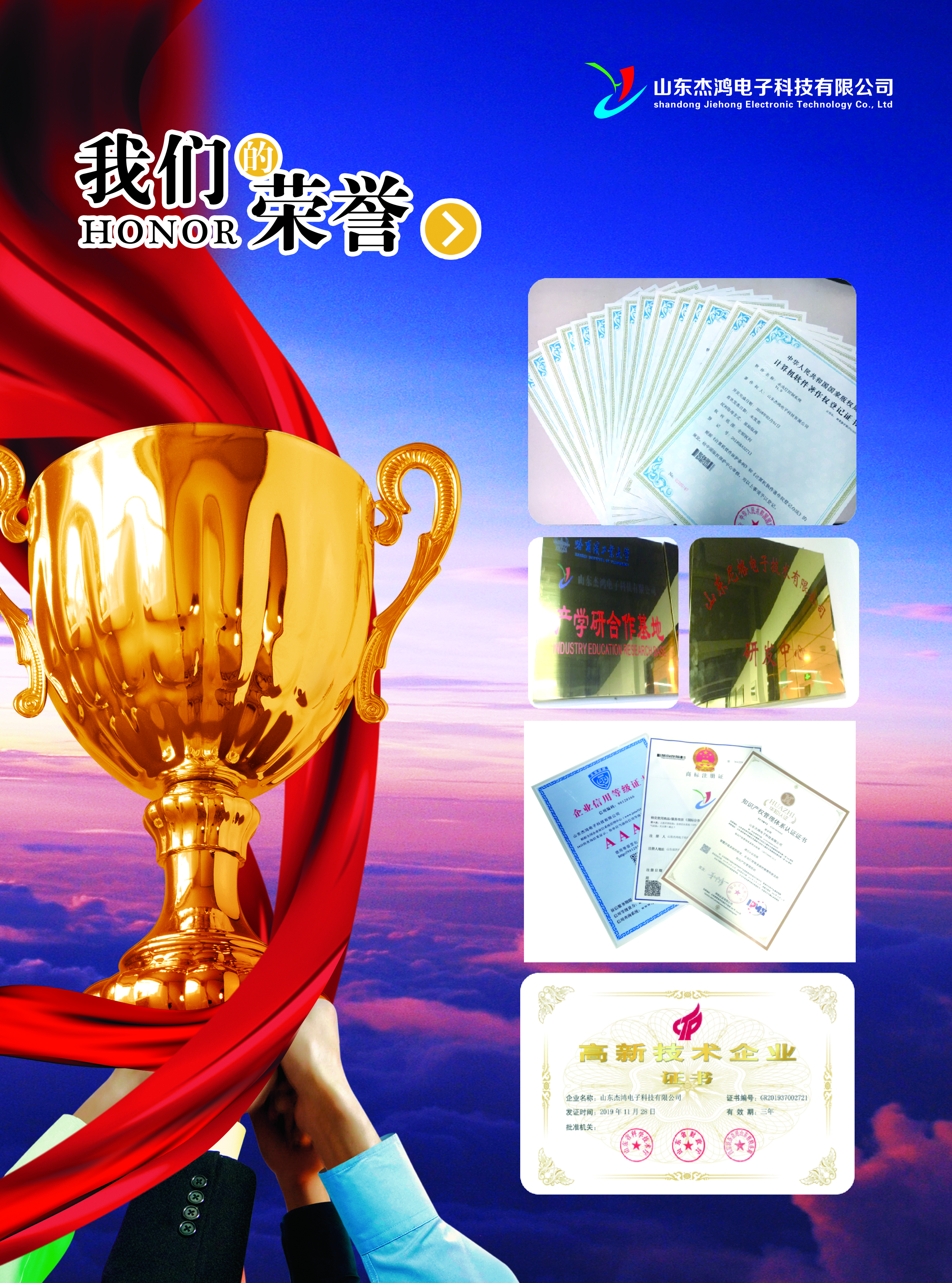 “自信源于專業(yè),信譽(yù)鑄就品牌”,山東杰鴻電子科技有限公司(以下簡(jiǎn)稱“杰鴻科技”)成立于2008年, 總部坐落于齊魯大地科技之城--泉城·濟(jì)南。公司秉承“科技為先、誠(chéng)信為本”的理念,致力于智慧城市,智慧交通,智慧農(nóng)業(yè),智慧汽車(chē), 智能家居,智慧消防,智慧工業(yè),無(wú)線通訊,人工智能等電子產(chǎn)品的設(shè)計(jì)與研發(fā),以及第三方軟件(app),系統(tǒng)服務(wù)器,系統(tǒng)集成的研發(fā)。 誠(chéng)信為本,開(kāi)拓創(chuàng)新,順勢(shì)而為,鑄就品牌。為做強(qiáng)做大而不懈努力!!!